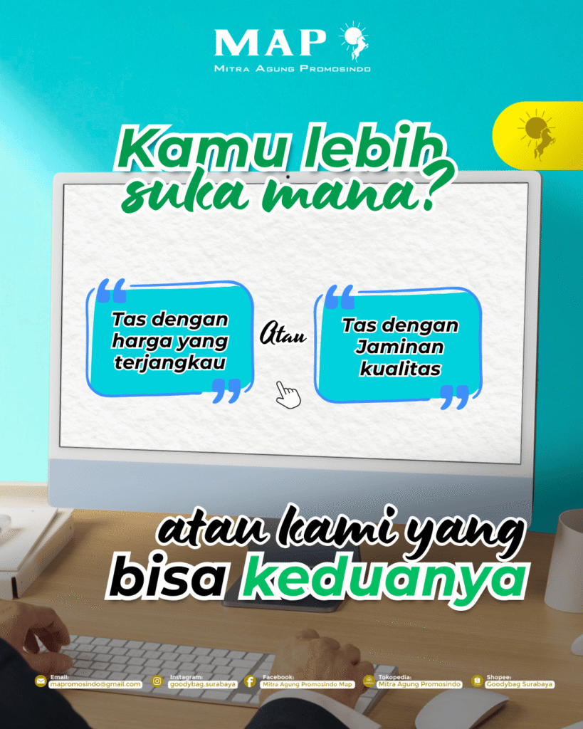 Pertanyaannya: Lebih suka mana? Tas dengan harga terjangkau, tas dengan jaminan kualitas, atau tas dari kami yang menjamin keduanya?