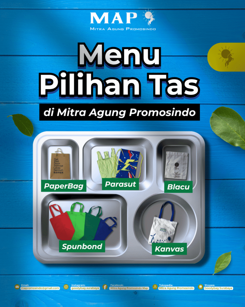 Dalam dunia bisnis yang kompetitif, kemasan bukan sekadar pembungkus, melainkan identitas brand yang berjalan. Mitra Agung Promosindo memahami bahwa setiap bisnis memiliki karakteristik yang unik. Oleh karena itu, kami menyediakan berbagai pilihan material tas berkualitas tinggi yang dapat disesuaikan dengan kebutuhan promosi, seminar, hingga belanja harian.